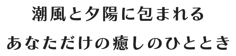 徒歩1分の場所に広がる天然ビーチでは、波音に耳を傾けながら、やわらかな夕陽に包まれる癒しのひとときをお楽しみいただけます。